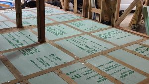 床下には、押出法ポリスチレンフォームの断熱材を敷き詰めました。