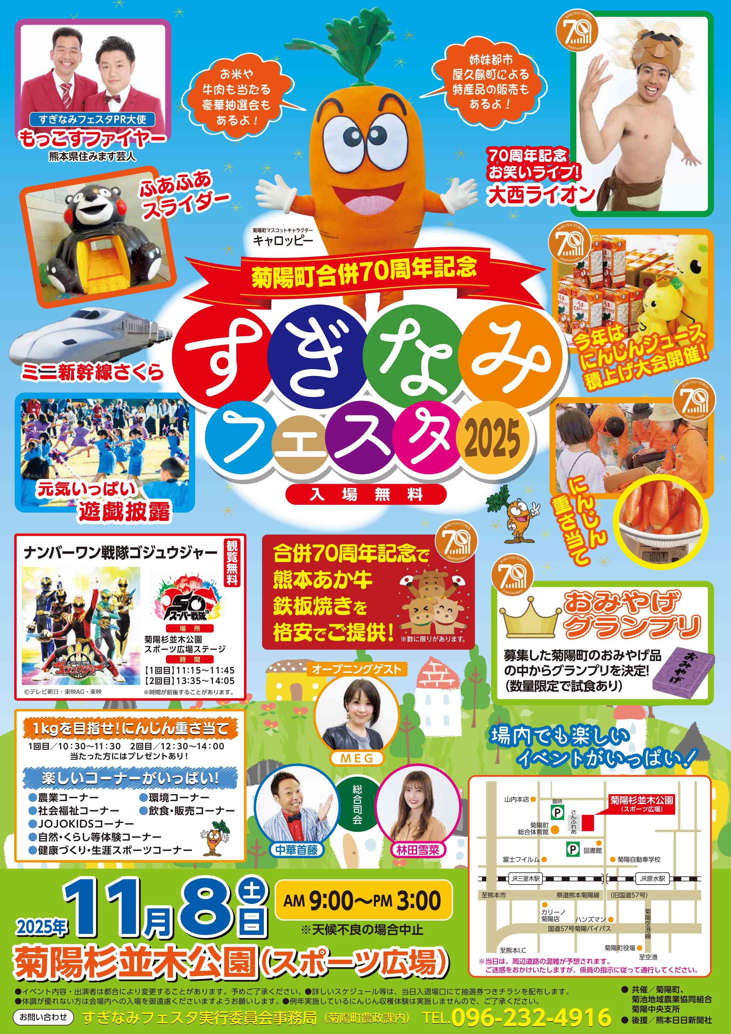 さて、菊陽町では秋の恒例イベント【すぎなみフェスタ2025】が開催されますヾノ≧∀≦)イエイエ♪