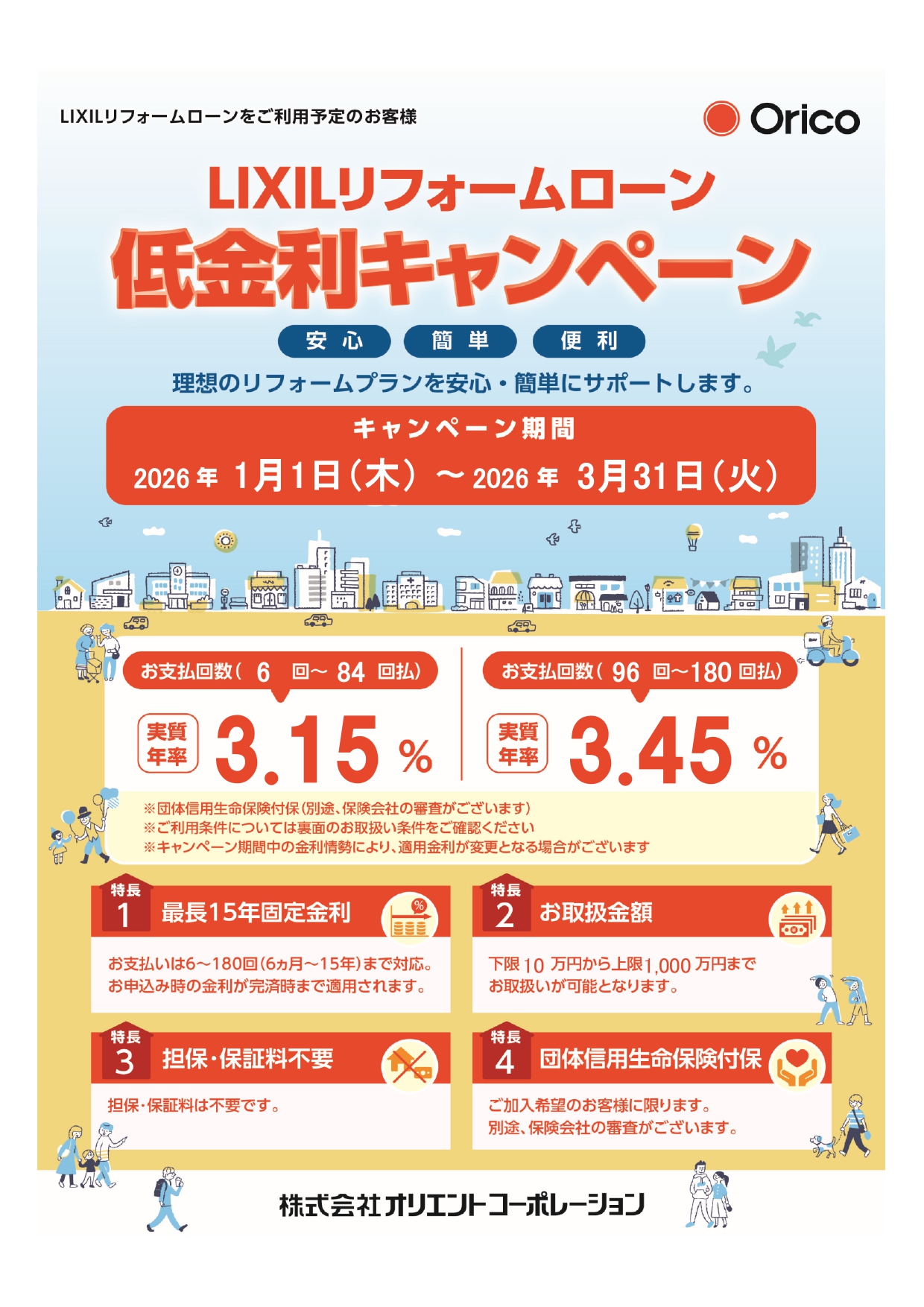 LIXILリフォームローン低金利キャンペーン(2026.3末まで)