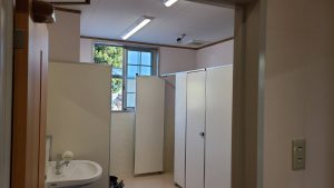 今回は、個室3つほどの化粧室(トイレ)を休憩室に造り替えていきました。